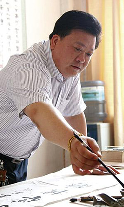 刘曰明,1966年3月生,号石月,江苏宜兴人,1983年开始从事紫砂陶瓷装饰、制作、造型设计。刻、绘、制皆精,并有极高的艺术造诣,2005年《紫砂四方鼎》被中国陶瓷博物馆永久收藏,所创作的陶艺作品在全国性陶瓷作品大赛和院校陶瓷大赛中屡获大奖,金奖三十多件次、银奖、铜奖近百件次,2009年为上海世博会设计制作了“世博鼎”,另外吉祥奥运大千筒“四方君子”“六方汉宫壶”等合作被印尼、马来西亚、新加坡、韩国、日本等国家的收藏家及博物馆竞相收藏,2009年9月响应政府招商来到喀左,被聘为喀左县紫砂行业协会秘书长、驻会会长。